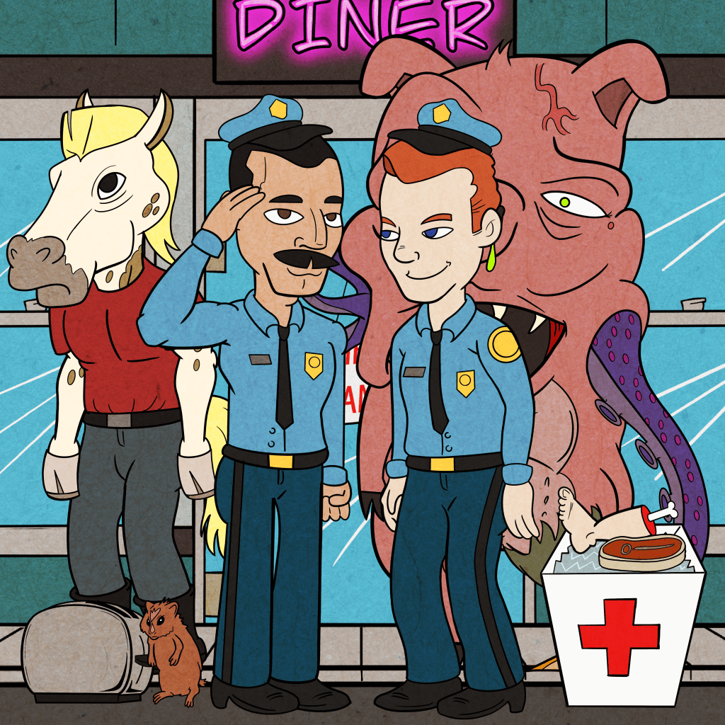 In association with DEEP DRAG on YouTube! Click the link below to follow the animated adventures of Steins and Halloways, fine officers of the law, as they patrol the streets and take on crime, monsters, danger, and even… lasagna!